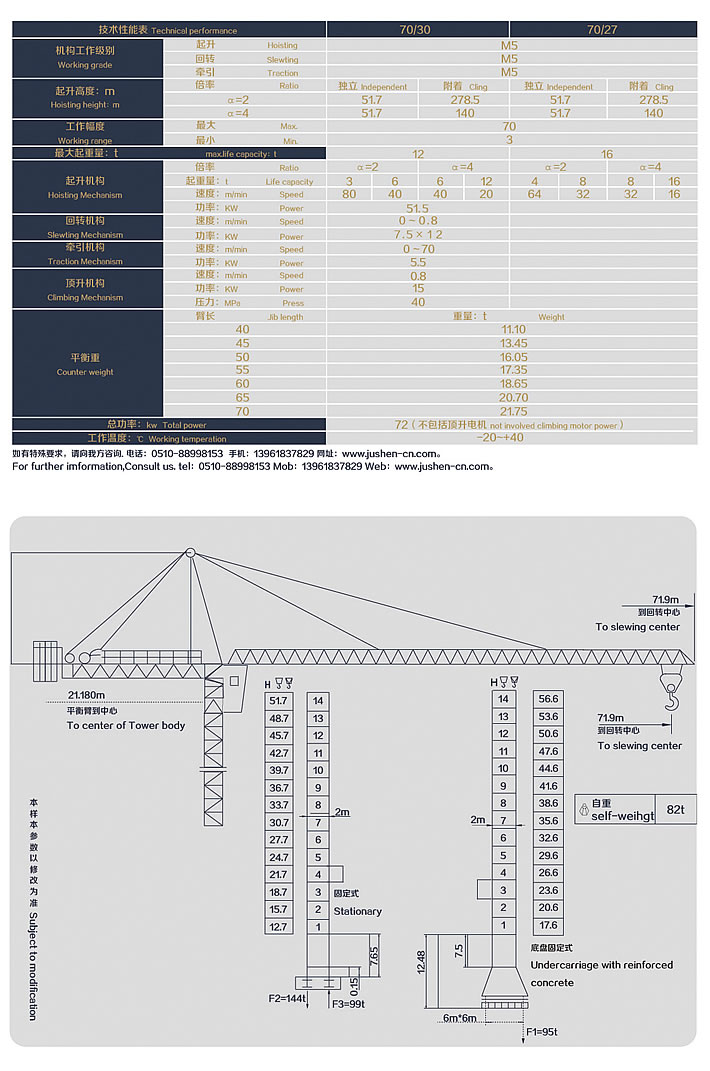 公司拥有250tm以下的塔头系列及平头塔系列的塔式起重机: