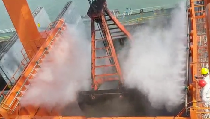 水除尘漏斗适用于码头装卸各种容易引起扬尘且允许沾水的散料,如煤炭、沙石、矿石、矿粉等。