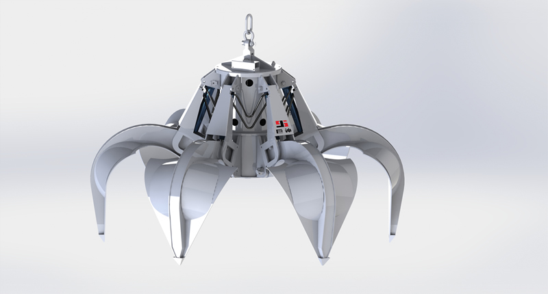 Electric hydraulic orange peel grab is specially used for single hook type cranes. It drives the hydraulic oil station through an external power supply connected to the motor, causing the force generated by the oil cylinder to open or close the grab peels, especially for irregularly shaped bulk cargo, the gripping effect is particularly prominent. It has advantages such as strong gripping force, fast gripping speed, and good gripping effect. Widely used in ships, incineration power plants, steel mills, and other industries,handing materials include coal, garbage, sand, ore, etc.