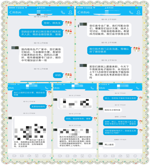 从2月14日到2月25日, 素未谋面的双方靠着网络,电话来相互了解,对塔吊设计的方案,投标问题等进行沟通,到最后的双方会晤敲定合同。短短的11天完成这一系列的工作,可见双方的效率及认可度都是极高的。